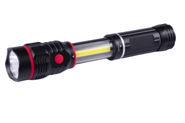 Celohliníkový ručný lampáš s 2ks LED čipmi pre dva spôsoby svietenia.