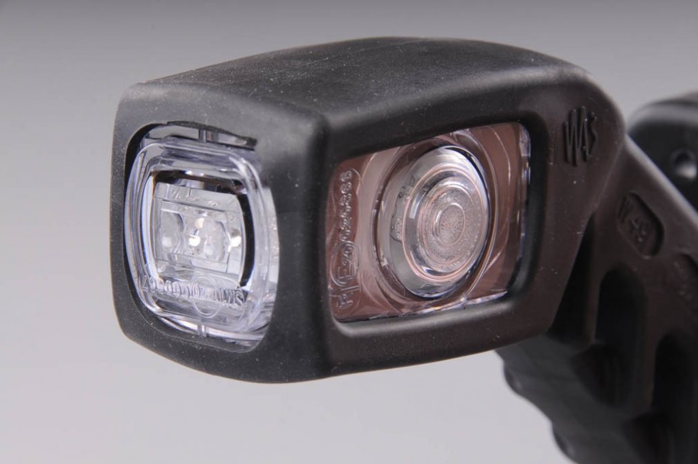 Biela LED svietiace dopredu + červená LED dozadu + oranžová bočné LED