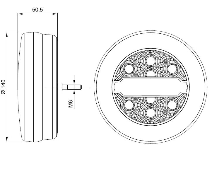 Koncové svetlo združené diodové, určené pre napeti 12-24V. Obsahuje obrysové a hmlové svetlo.