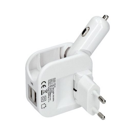 univerzálny USB adaptér pre dobíjanie multimediálnych zariadení v domových zásuvkách aj automobiloch
