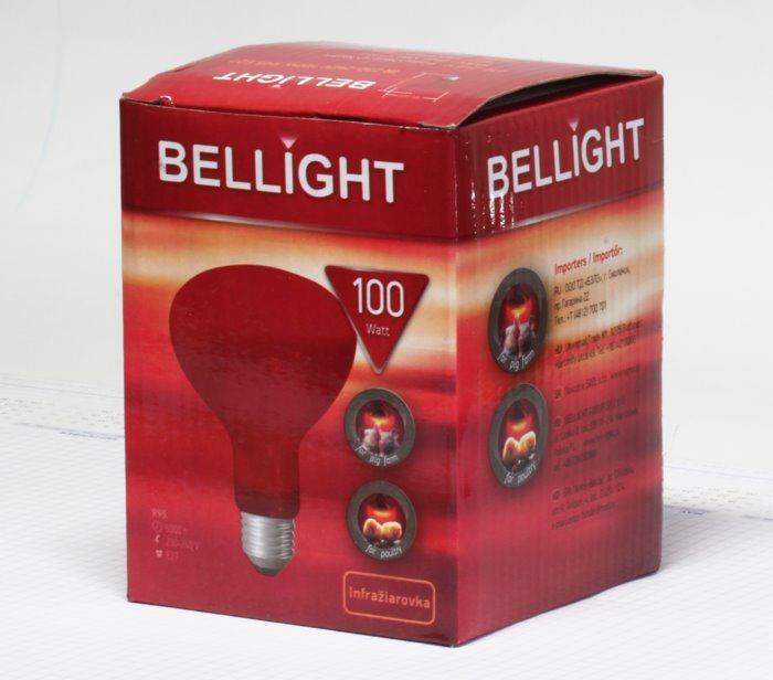 Tvar a prevedenie:Žiarovka vyžaruje infračervené tepelné vlny, ako typická tepelná lampa. Má špeciálny vstavaný reflektor pre priame vyžarovanie tepla v ľubovoľnom smere. Červené sklo prepúšťa infračervené vlny vyžarované zvláštnym vláknom žiarovky. Načervenalé svetlo nenaruší normálnu aktivitu počas dňa alebo noci.