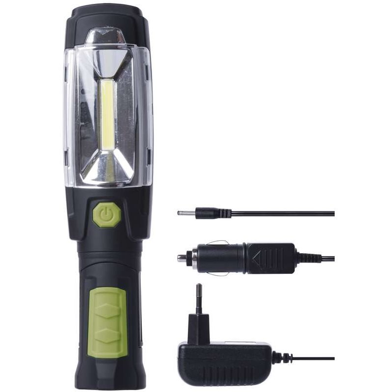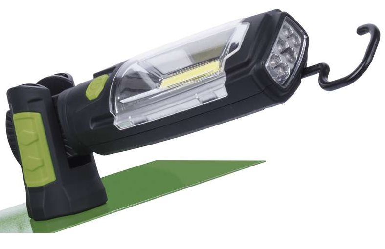 Univerzálne svietidlo s 3W LED COB chipom, ktorý zaisťuje širokú plochu osvetlenia. Doba svietenia až 8,5 hodiny 6 LED a až 3,5 hodiny COB LED. Dosvit svietidla COB LED je 20 m a 7 LED 25 m. Možnosť uchytenia pomocou magnetu alebo háčika.
