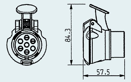 Adaptér krátky 12V 7P/13P, 13-pól DIN/ISO 1724 (zástrčka), 13-pól ISO 11446 (zásuvka), dĺžka ca. 57,5 mm