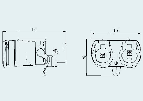 Krátky adaptér 24V, 15-pól ISO 12098 (zástrčka), 1x7-pól DIN/ISO 1185 (zásuvka),1x7-pól DIN/ISO 3731(zásuvka, dutinka ako ukostrovací kontakt)