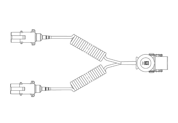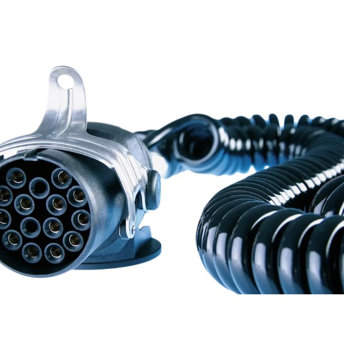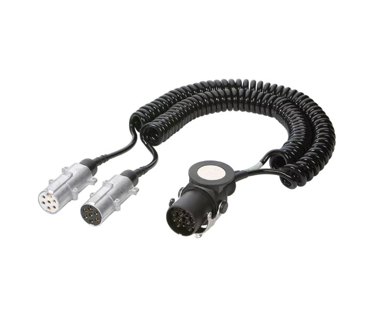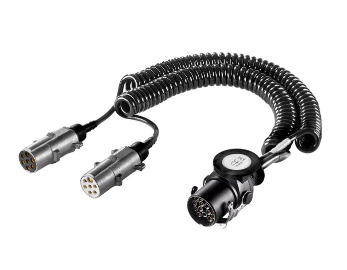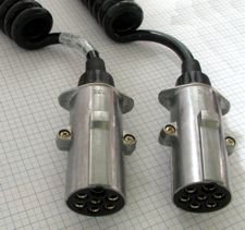 2 hliníkové zástrčky 7 pól 24V, ISO 1185, so vzpernou ochrannou priechodkou, priemer 40 mm, kábel 6x1,0 + 1x1,5 mm2, rozvinutá dĺžka 4,50 m