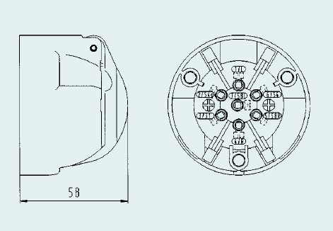 Zásuvka 12V/7P polová- hliník,bez odpínania hml.svetla, skrutkové spoje. Možné doobjednať gumenné tesnenie pod .č. 035286 DIN/ISO 1724