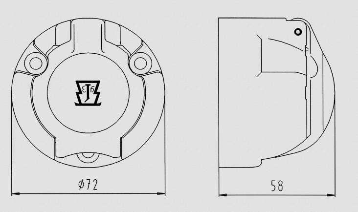 Zásuvka 12V/7pólová- bez vypínania hmlového svetla, nárazuvzdorný plast, skrutkové spoje. Možné doobjednať gumenné tesnenie pod č. 035286. DIN-ISO 1724