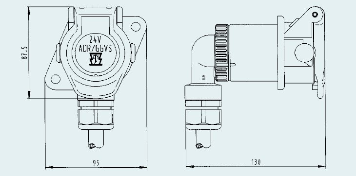 Zásuvka 15-pól 24V, ISO 12098, krimpovacie kontakty AMP kompatibilné, priamy vývod kábla 90 stupňov