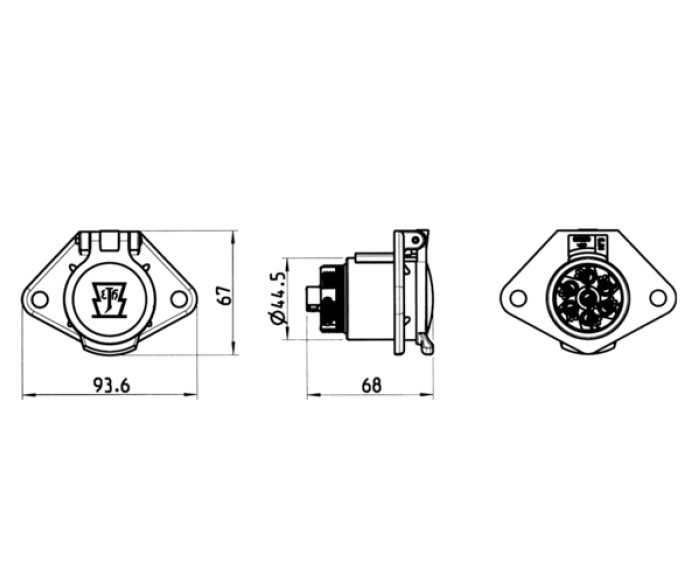 Zásuvka 7-pól 24V,DIN/ISO 3731, celokovová s tesnením
