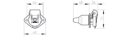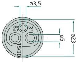 Pripojenie vodičov do zásuvky je pomocou dvoch dutiniek 6,3mm na jeden pól dvoch dutiniek 6,3mm na druhý pól a jednej 4,8mm na kostru. Maximálny prúd 20-30A.