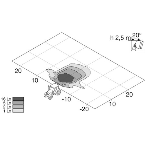 Pracovný svetlomet pre krátke vzdialenosti, dosah 20m, spôsob upevnenia - hrdlo na trubkový držiak.
