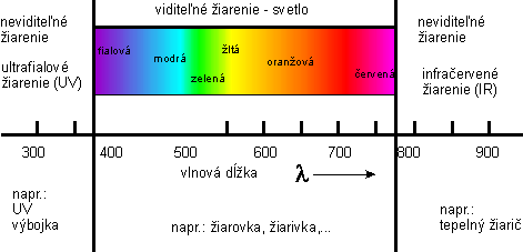 Viditeľné svetlo je žiarenie s vlnou dĺžkou 380 až 780nm, t.j s frekvenciou od 790.1012 až 385.1012 Hz.
