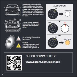 S vynikajúcim jasiom1) a integrovanou zbernicou CANbus (pre zamedzenie chybových správ na palubnej doske 2) OSRAM LEDriving HL ALLSEASON zaišťuje kompaktnú LED náhradu konvenčných autožiarovek do diaľkových a stretávacích svetiel H7. Tieto LED žiarovky sú kompatibilné s 12V, prichádzajú s optimalizovaným kužeľom svetla, prepínateľnou farbou svetla zo 6 000 K Cool White na 2 700 K Warm White, ktorá zlepšuje viditeľnosť aj za zlých povetrnostných podmienok (napr. sneh, dážď, alebo hmla), okrem toho Warm White je možné použítť k vytvoreniu štylového staromódneho vzhľadu v klasických autách. So širokou škálou vhodného príslušenstva OSRAM je inštalácia ľahká. Špičková technológia OSRAM s integrovaným aktívnym chladením – vysokorýchlostným ventilátorom – poskytuje maximálny odvod tepla pre vyšší výkon. Prvotriedna kvalita OSRAM a technológie LED zaručuje až 5krát dlhšiu životnosť (v porovnániu s tradičnými halogenovými žiarovkami). Na pár žárovek sa vzťahuje 5ročná záruka OSRAM3).