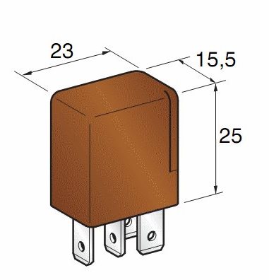 Relelé 5-kontaktné, 2x 6,3mm a 3x 4,8mm. Možné doobjednať držiak - modul č.01.01480 a 01.01560