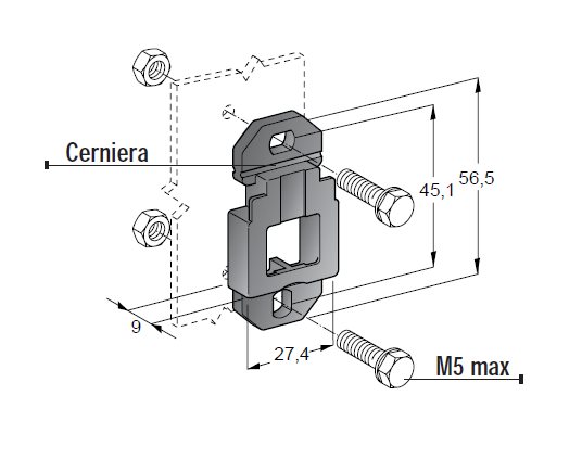 Vhodný pre upevnenie držiaka na relé č.45.10245, na držiak MAXI nožovej poistky č. 01.00390 /30.01001/,01.01005, na držiak UNI nožovej poistky č.03.00400 ,03.01301,03.01307 a iné.
