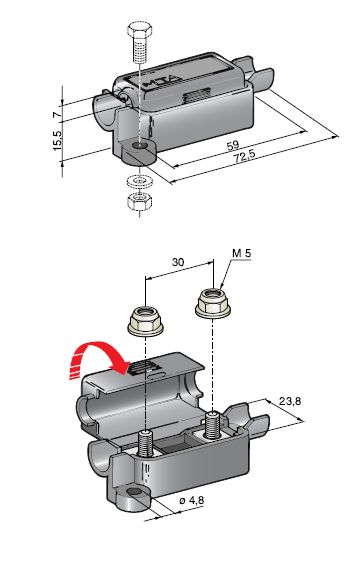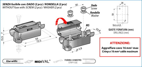 Súčasťou držiaka sú dve skrutky. Vhodný pre plieškové poistky i pre poistky MIDI