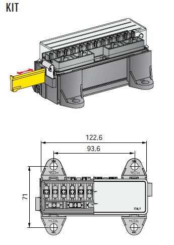 Súčasťou držiaka sú zaisťovače konektorov. Možné doobjednať kryt č. 03.00670, spodný kryt č. 03.00680 a upevňovacie komponenty č. 03.00690, 03.00691 a konektory 17.07920 (17.07930,11.07900,11.07940, 19.07501). Ďalej je možné pripájať k držiaku iné komponenty.