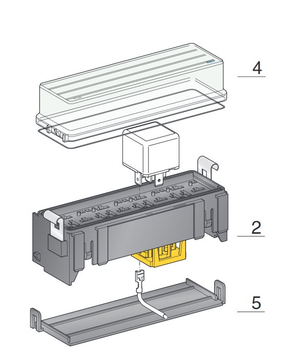 Vhodné pre relé t.j. 9445130J, 9445141J, 9445181J a iné. Súčasťou držiaka je zaisťovač konektorov.