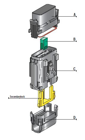 Kit obsahuje držiak- telo / C 03.21000/, vrchný kryt / A 03.21210/, spodný kryt D, zaisťovač konektorov + 2 dutinky 11.07660.
