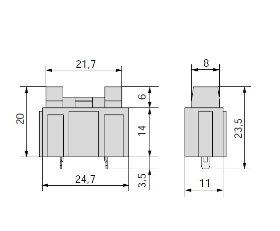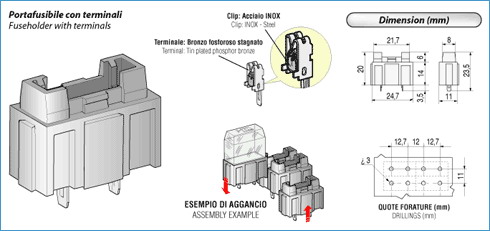 Držiak je možné pripájať k sebe do zostavy v rôznych smeroch, vhodný do plošného spoja. Možné doobjednať kryt držiaka č. 03.00359