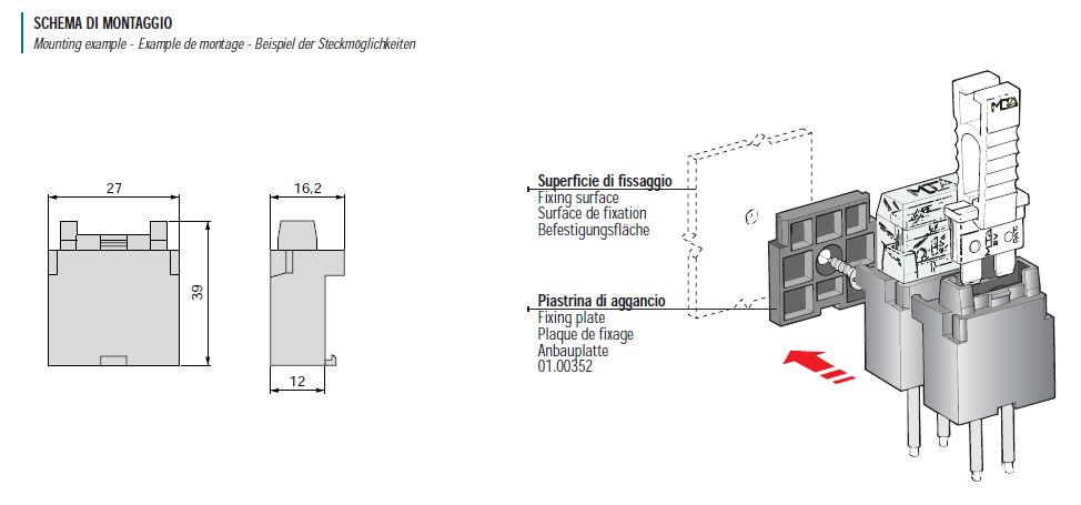 Držiak je možné pripájať k sebe do zostavy. Možné je doobjednať kryt držiaka č. 03.00359 a držiak držiaka č. 03.00352. Vhodné konektory 17.07920 (11.07900,11.07901,11.07940,1707930,19.07501)