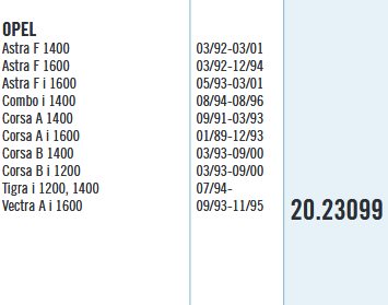 Corsa 1.2,Corsa 1.4, Corsa1.6, Astra 1.4, Astra 1.6, Vectra 1.6,