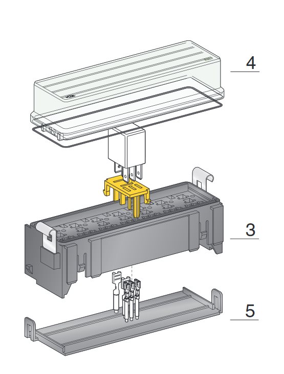 KIT držiaka je vhodný pre 7 kusov MICRO relé /06.03020, 06.03010, 06.03000, 4RD 007 814-011/