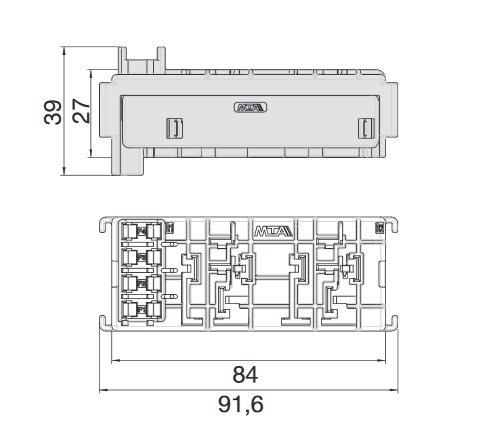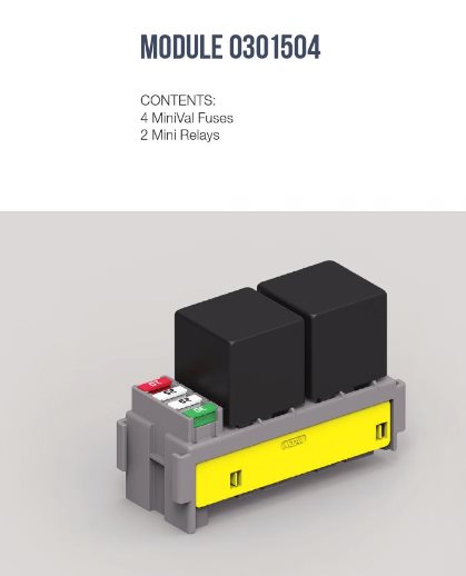 Súčasťou je zaisťovač konektorov. Možné doobjednať konektory MINI F280/11.08331-8ks/, F630E/11.08501-10ks/, ,kryt pod č. 01.01590 a upevňovacie konzoly č.01.01580.