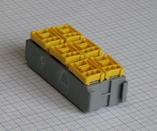 Vhodné pre MICRO relé 06.030xx. Možné doobjednať konektory pod označením SPT F630 /11.02050/ - 12 ks a JPT F280 /19.01100/ - 18 ks, kryt pod č.01.01590 , upevňovacie konzoly č.01.01580 - 2ks.