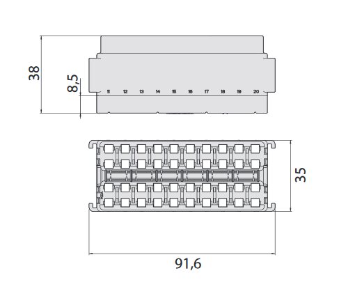 Súčasťou je zaisťovač konektorov. Vhodné konektory - MINI F 280 11.08331 - 40 ks. Možné doobjednať kryt pod č.01.01590 a upevňovacie konzoly č.01.01580 - 2ks.