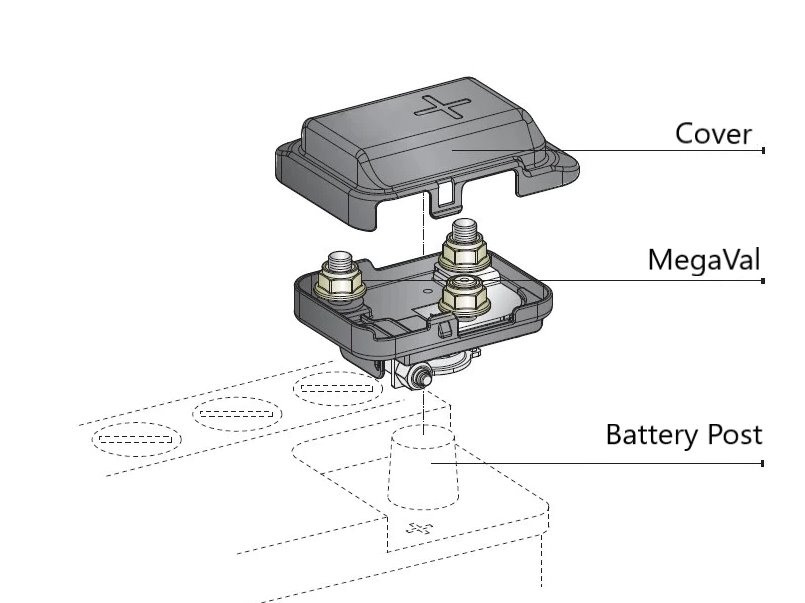 MTA Skrinka, držiak pre MEGA poistky + svorka+ krytka