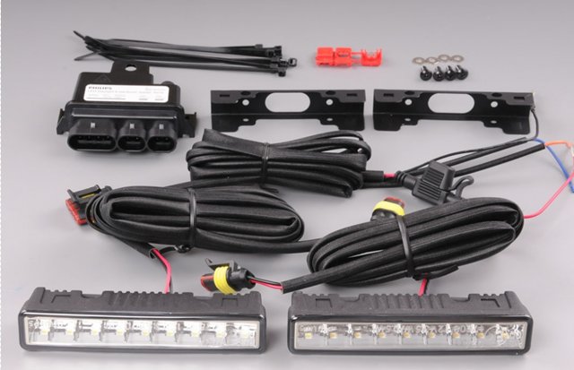 Balenie obsahuje 2 ks svetiel, kabeláž, spojovací materiál a modul, ktorý rozsvieti svetlá automaticky po naštartování auta.