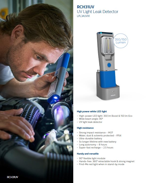 Nová generácia LED pracovných svetiel je dizajnovaná pre všetky údržbové práce. Vďaka unikátnemu nárazu vzdornému a flexibilnému upevneniu kvalitných LEDiek je silné svetlo a UV svetlo dostupné za každých podmienok.