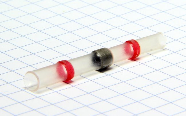 • Pre spojenie nie je potrebná spájkovačka - odizolované vodiče stačí vložiť dovnútra a zapaľovačom alebo teplovzdušnou pištoľou roztaviť stredový prstenec (teplota +110° až 200°C).