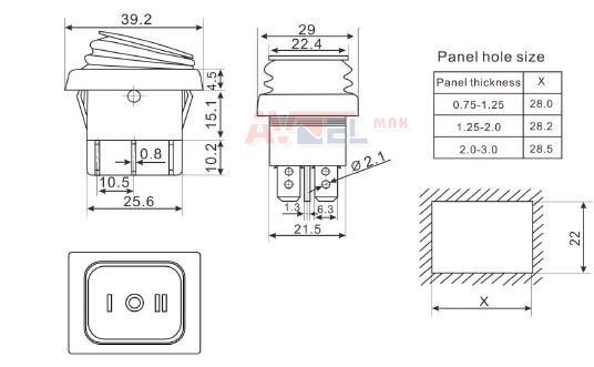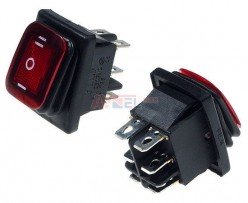 vypínač kolískový trojpolohový, 6- pinový, vodeodolný, 250V 2x16A
