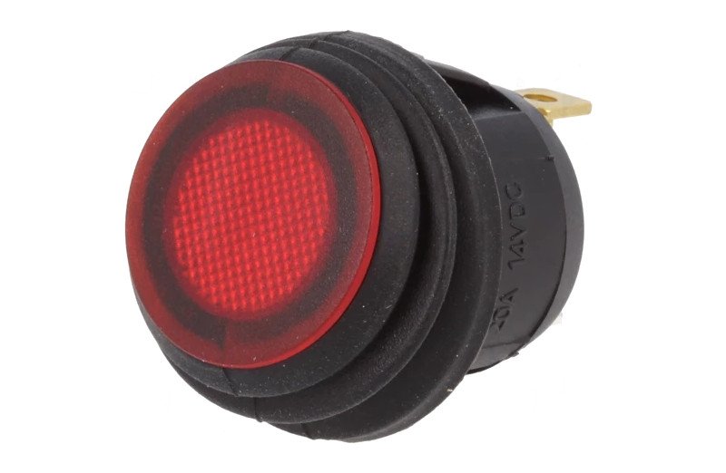 Vypínač kolískový - okrúhly - červený-podsvietený 12V 20A