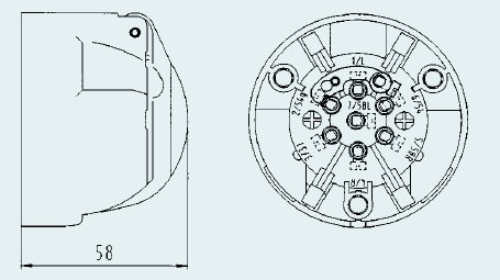 Zásuvka 12V/7pólov-okruhla,plast-bez vyp. hml. svetla - heavy